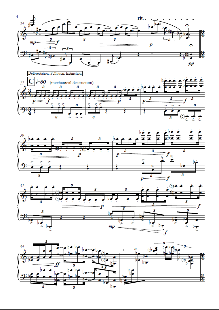 fifths. The piece begins by depicting the pristine forests and tranquil oceans in