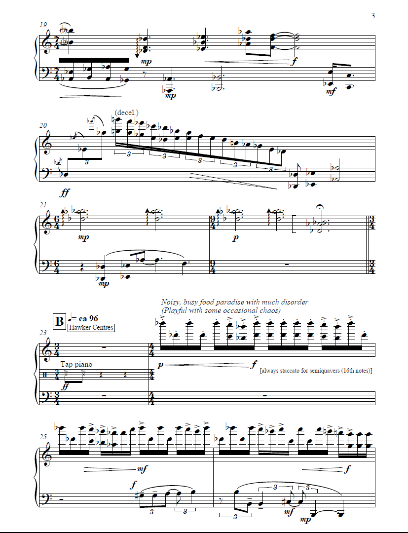 Next, I write about “Hawker Centres”, a fast polyrhythmic section where Rasa Sayang