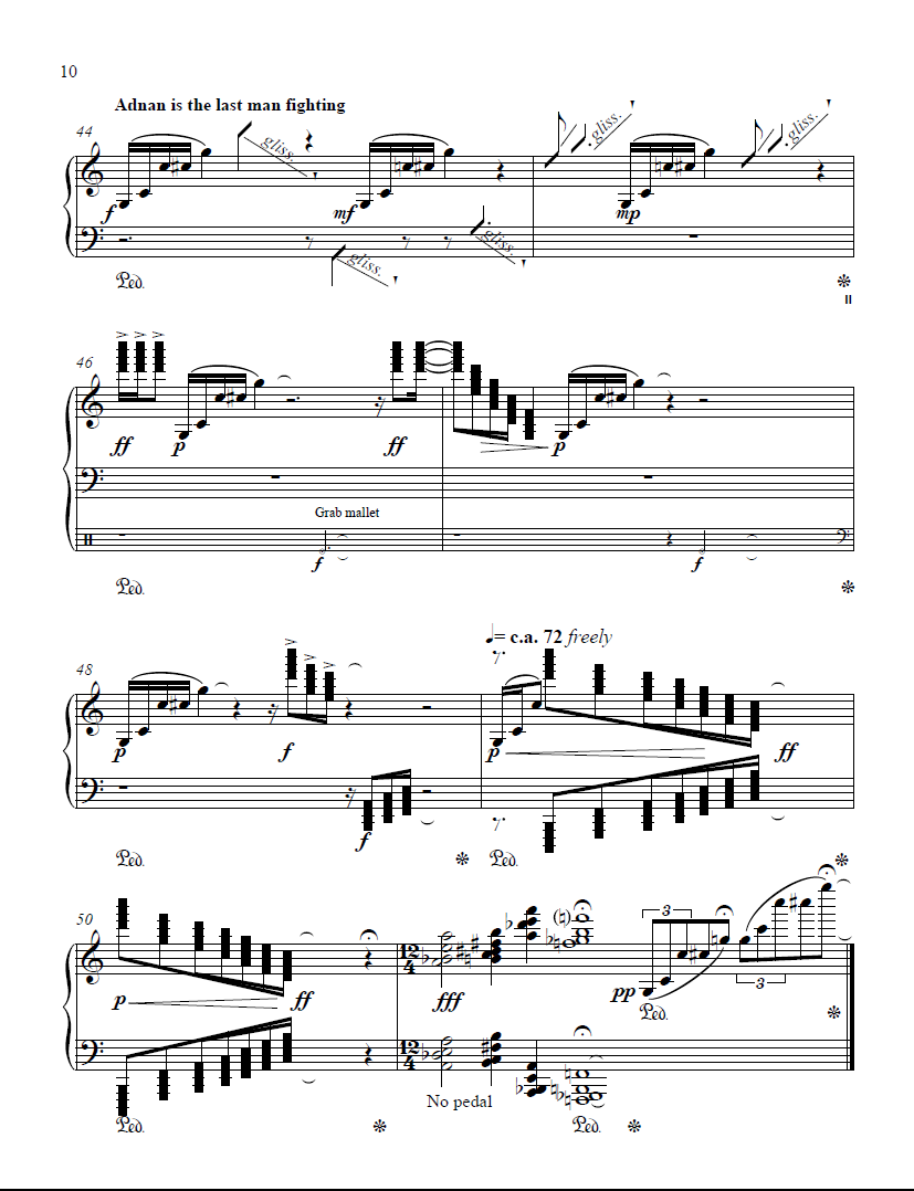 The piece starts off with uncertainty created by a 12-tone row as the Adnan’s men anticipated the