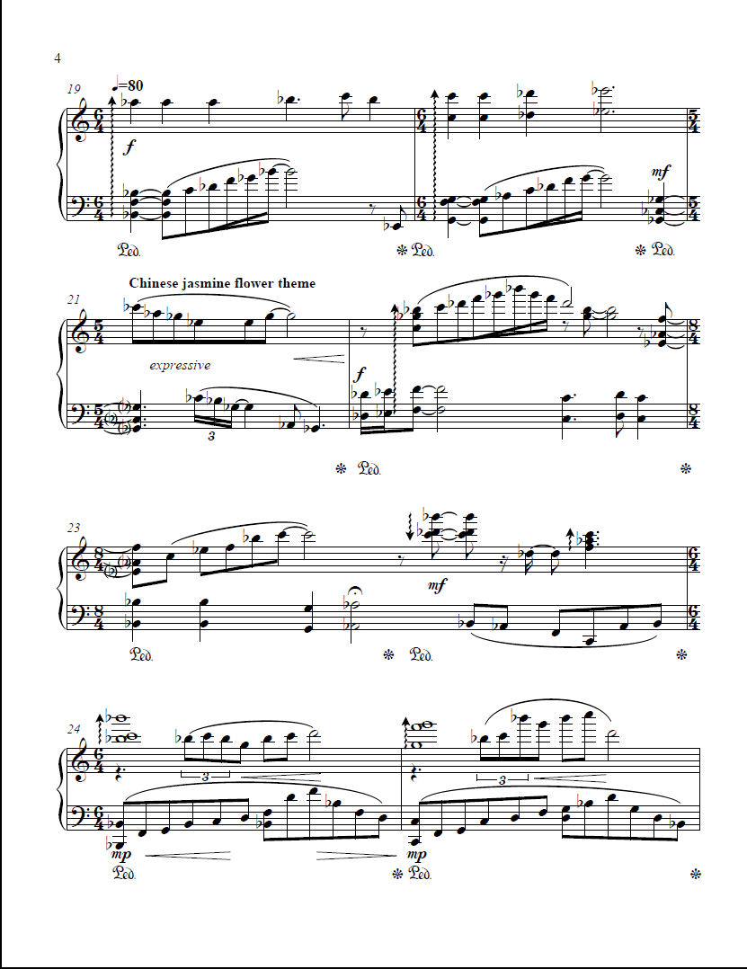 famous Chinese melody ‘Jasmine flower’, the piece re-creates memories of the interactions between