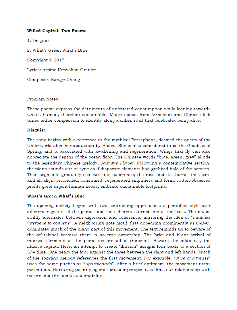 Willed Capital: Two Poems (soprano and piano)
