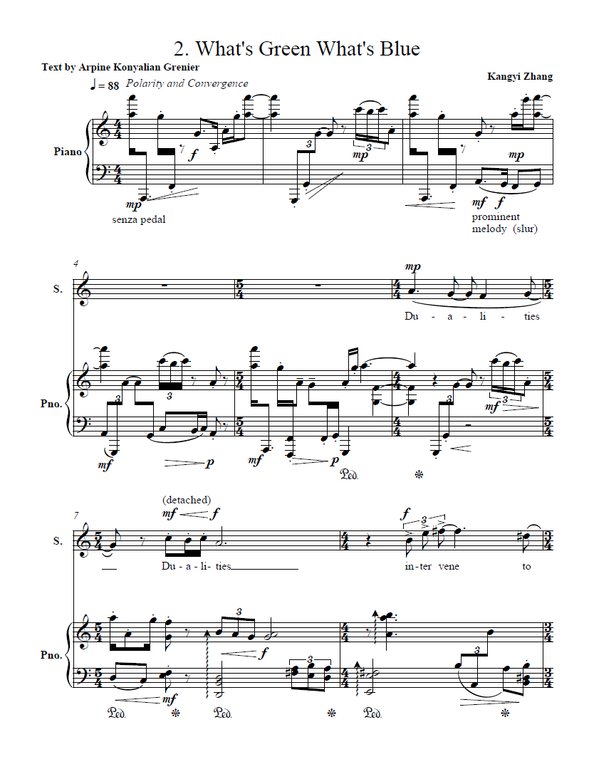 of the soprano melody references the first movement. For example, “puce chartreuse”